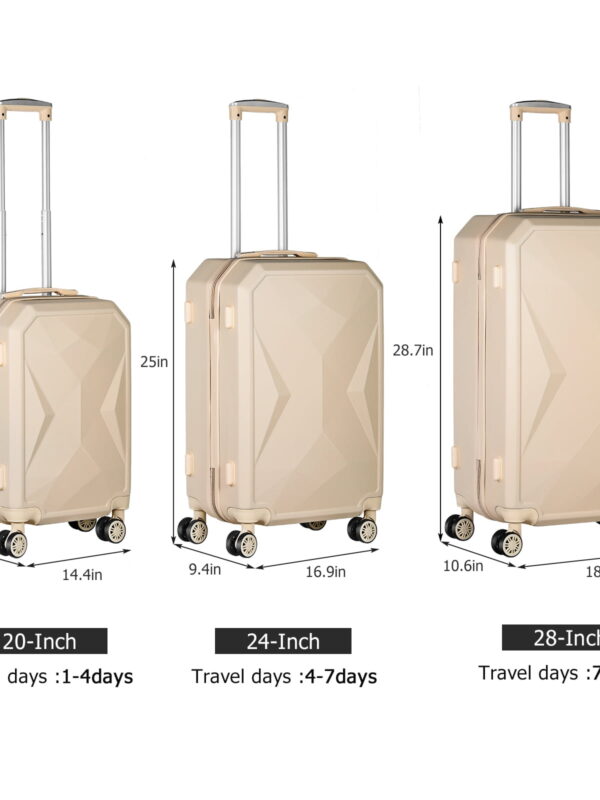 • Luggage 3-Pieces set ABS Durable Suitcase Beige 20"24"28"