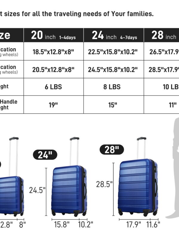• 20"/24"/28" 3 pcs/set in ABS Spinner Wheel Luggage, Carry on Suitcase