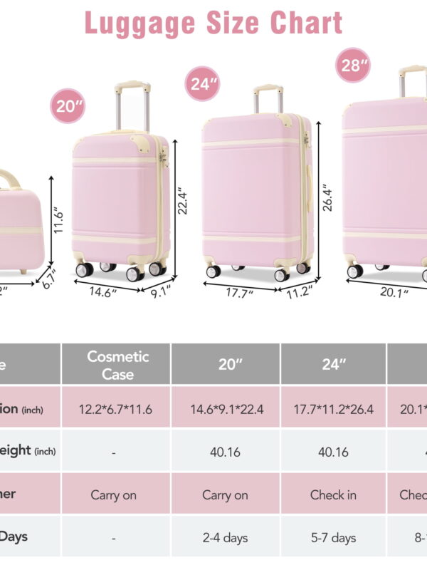 • MAYEERTY 4-Piece Retro Hardshell Luggage Set with TSA Lock for Travel, 20"+24"+28"Lightweight Suitcases & Cosmetic Case